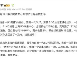 雷军15小时直播挑战京沪行 小米SU7 Pro实测续航1313公里破质疑