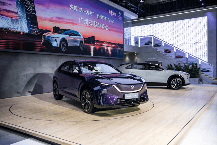 在广州国际车展上,长安马自达携两款新能源车型亮相17.2馆,其中“九风道悦级智能SUV”MAZDA EZ-60与电动车型MAZDA EZ-6成为焦点。两款车型不仅展现了品牌在电动化领域的最新成果,更通过技术创新与市场布局,为合资品牌新能源发展提供了新范本。